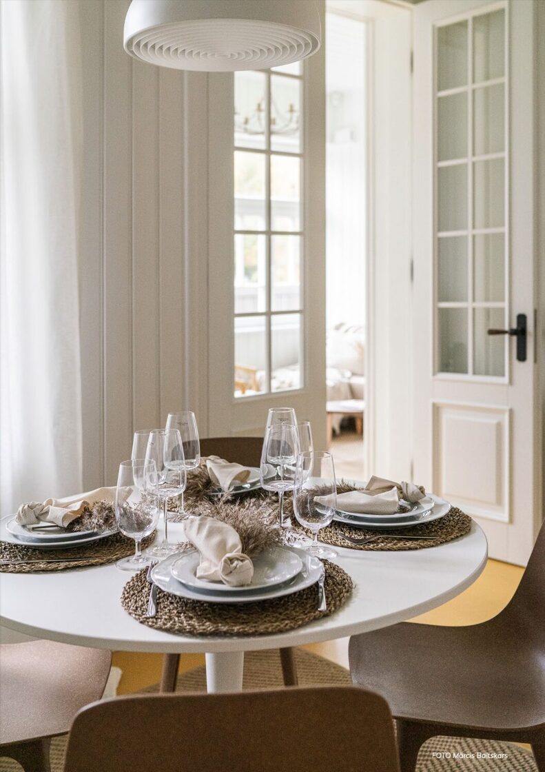Galdu izvietojums, ja viesi tiek sēdināti pie apaļajiem galdiem